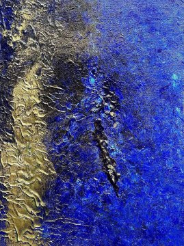 "Plutos blaue Seite", Acryl auf Leinwand mit Goldstaub und Zuchtperlen, Größe 50 x 70 cm